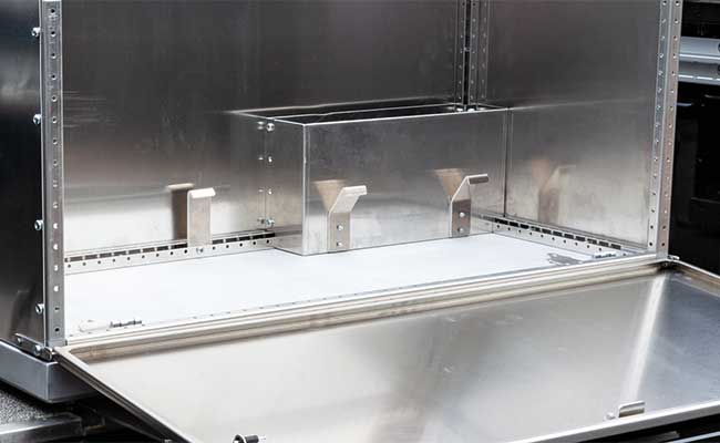 Unsere Boxen können Sie individuell bestücken und diese auf Ihren Pick-up oder Transporter verladen. Durch ein Schienensystem können diese im Laderaum einfach bewegt werden.